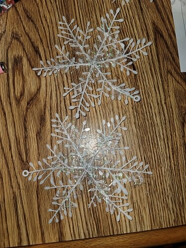 The snowflakes were quite big. I put them on my tree. The tree is abt 2 meter high The snowflakes were quite big. I put them on my tree. The tree is abt 2 meter high