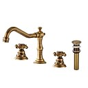 antieke koperen kraan met afvoer, voorspoelen draaibare wijdverspreide middenset twee handgrepen eengats badkranen met warm en koud schakelaar |