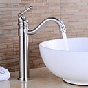 badkamer wastafel kraan, antiek messing retro stijl enkele handgreep een gat standaard uitloop draaibare kraan set met keramische handgreep en warm/koud water |