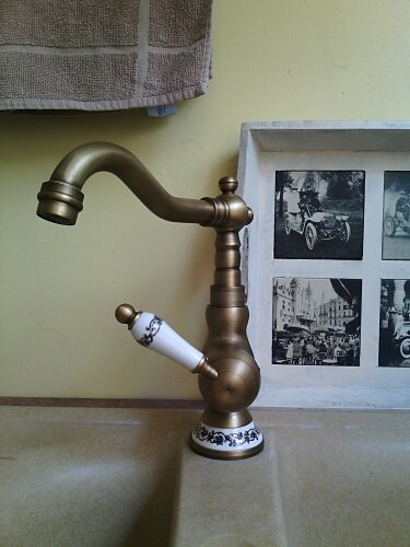 wastafelkraan in de badkamer - klassieke antieke koperen middenset enkele handgreep eengatsbadkranen