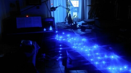 Product sneller dan verwacht ontvangen vanuit China. Kwaliteit is fragiel, maar de lichtjes werken allemaal. Ik koos voor een snoer van 10m en gebruik het binnen. De afstand van de stekker het regeldoosjes is 50cm. Na het regeldoosje start de lichtjesslinger meteen. Deze bestaat uit 4 verschillende slingerlijnen van seriële lichtjes die met elkaar verweven zijn. Bij uitval van 1 lijn is daarom niet noodzakelijk de hele slinger kapot. De 8 verschillende standen snelle knipper, trage knipper, gemixte knipper, vaste stand, traag doven... zijn in orde. Het blauwe led-licht is radiant, donkerblauw en vrij hel. Hierbij een foto van de lichtjes in een donkere kamer. De lampjes voelen koud, zoals het hoort. Product sneller dan verwacht ontvangen vanuit China. Kwaliteit is fragiel, maar de lichtjes werken allemaal. Ik koos voor een snoer van 10m en gebruik het binnen. De afstand van de stekker het regeldoosjes is 50cm. Na het regeldoosje start de lichtjesslinger meteen. Deze bestaat uit 4 verschillende slingerlijnen van seriële lichtjes die met elkaar verweven zijn. Bij uitval van 1 lijn is daarom niet noodzakelijk de hele slinger kapot. De 8 verschillende standen snelle knipper, trage knipper, gemixte knipper, vaste stand, traag doven... zijn in orde. Het blauwe led-licht is radiant, donkerblauw en vrij hel. Hierbij een foto van de lichtjes in een donkere kamer. De lampjes voelen koud, zoals het hoort.
