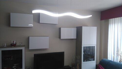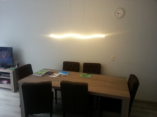 Deze hanglamp heeft een mooie en opvallende vorm. Ik had helder wit besteld. De lichtopbrengst voor een lamp van 40 Watt is enorm. De hele woonkamer wordt erdoor verlicht. Dimmen is helaas niet mogelijk. Deze hanglamp is prima geschikt voor een werkplek waar veel licht nodig is. Achteraf gezien had ik voor de woonkamer beter warm wit kunnen kiezen. Deze hanglamp heeft een mooie en opvallende vorm. Ik had helder wit besteld. De lichtopbrengst voor een lamp van 40 Watt is enorm. De hele woonkamer wordt erdoor verlicht. Dimmen is helaas niet mogelijk. Deze hanglamp is prima geschikt voor een werkplek waar veel licht nodig is. Achteraf gezien had ik voor de woonkamer beter warm wit kunnen kiezen.