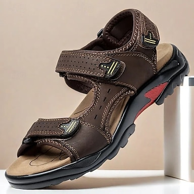 Bruine visserssandalen van imitatieleer voor heren – ademend, gesloten ontwerp met verstelbare band voor casual zomerkleding
