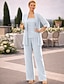 Broek Tot de grond Moeder van de bruid jurk 3/4 mouw Met sieraad Elegant Eenvoudig minimalistische Formeel Bruiloft gast Satijn Wrap inbegrepen met Effen kleur
