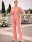 Broek 3-delig pak Tot de enkel Moeder van de bruid jurk Lange mouw Ronde hals Elegant Vintage Bruiloft gast Chiffon Wrap inbegrepen met Geplooid Effen kleur