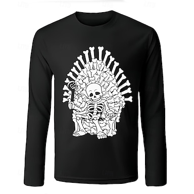 Doodskoppen Halloween Zwart Donker Grijs T-shirt Voor heren Grafisch 100% katoen Shirt Sport Klassiek Overhemd Korte mouw Comfortabel T-shirt Zomer Lente Modeontwerper kleding S M L XL XXL