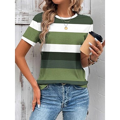 Dames T-shirt Afdrukken Grafisch Geometrisch Gestreept Vintage Stijlvol Klassiek Korte mouw Strakke ronde hals Ronde hals Normale tops Dagelijks Grasgroen Khaki Zomer Lente