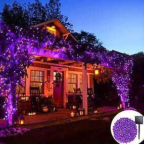 solcelledrevne fargerike lysstrenger 39,37 fot/12 m med 100 lysdioder 8 lysmoduser vanntett utendørs dekor for halloween hagefester helligdager solcellestreng lys utendørs innendørs dekorasjon 1/2
