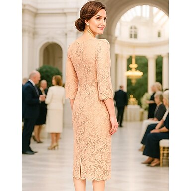 Kjole Mor til Bruden Kjole Elegant Fest Minimalist Crew Hals Kne Lengde Spandex Uten Ermer med Blonder Enfarget