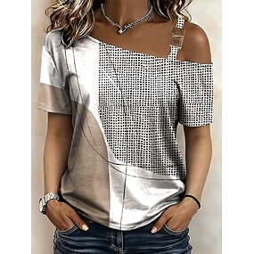 Dame T skjorte T-skjorte Trykt mønster Asymmetrisk Grafisk Geometrisk Abstrakt Årgang Mote Stilfull Kortermet Enskuldret Vanlige topper Daglig Ut på byen Helg Rød Oransje Kakifarget Sommer Vår