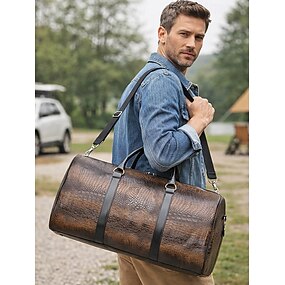 Herre weekendveske i krokodillemønster i kunstskinn med justerbar stropp, stor kapasitet, vanntett – perfekt for helgeturer og korte forretningsreiser