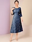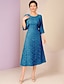 A-linje Ankellengde Festkjole Cocktail Kjole Gjestekjole til bryllup Kjole til brudens mor 3/4 ermer Crew-hals Elegant Formell Formell kveld Bryllupsfest med Blonder