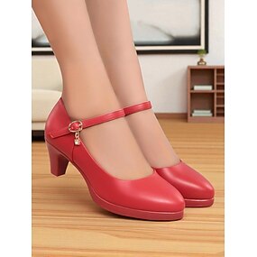 Røde Mary Jane-pumps med mellomhæl til dame – klassiske pensko med rund tå, ankelstropp og sjarm for damer, ideelle for kontor, kirke eller semiformelle arrangementer