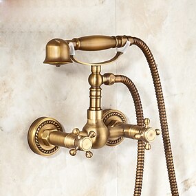 dusjkran / kroppsstrålemassasjesett - hånddusj inkludert uttrekkbar regndusj antikk / vintage stil antikk messingfeste inne i messingventil badekar dusj blandebatterier