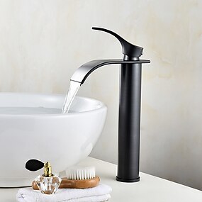 svart servant servant blandebatteri messing, høye baderomskraner enkelthåndtak ett hull med varm og kald slange kar vannkran dekk montert
