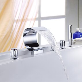 vannfall badekar kran veggmontert, utbredt bad dusj blandebatteri bad romersk badekar påfyllingsbatteri blandebatteri messing, 3 hulls sprøyte med kaldt varmtvannslange