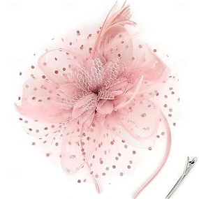 Elegant nettmesh tyll fascinator hatt hodepryd klips hodebånd med sløyfe(r) fjærblomst blomster 1PC Kentucky bryllup tefest hesteveddeløp cocktail vintage kvinner å imponere