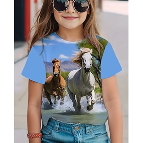 Jente 3D Grafisk Dyr Hest T skjorte T-skjorte Kortermet Sommer Vår Mote Grunnleggende Barn 4-12 år Crew-hals utendørs Avslappet Daglig Normal
