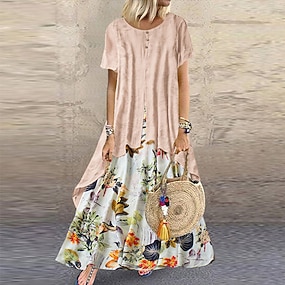 kvinners fritidskjole linkjole svingkjole lang kjole maxi kjole grønn kortermet floral patchwork sommer våren crew neck fashion 2023 5xl
