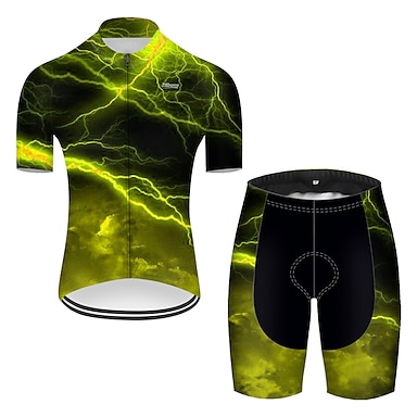 Herre Sykkeljersey med shorts Kortermet Fjellsykling Veisykling Sommer Vår Høst Rød Grønn Svart / Blå Gradert Mønstret Lyn 3D Morsom Sykkel 3D Pute Sykling Hurtigtørkende Ultrafiolettbestandig