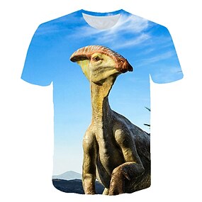 Gutt 3D Dyr Dinosaur T skjorte Kortermet 3D-utskrift Sommer Aktiv Gatemote Kul Barn Baby 3-12 år Skole utendørs