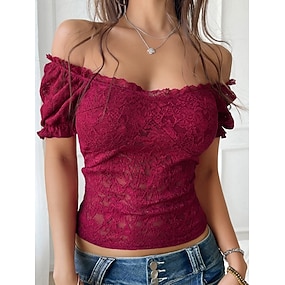 Dame Skjorte Bluse Blonde Lapper عادي Stilfull Sexy Moderne Kortermet Løse skuldre Vanlige topper Daglig Ferie Svart Hvit Rosa Vin Sommer