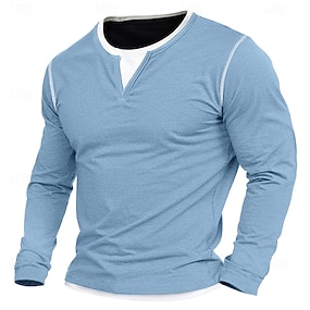 Herre Skjorte T-skjorte med V-hals Langermet skjorte Bambus-T-skjorte Langermet V-hals Vår & Vinter Helfarge Lapper Daglig Fritid Gate stil falske to stykker utendørs Gate Avslappet Lyseblå Lysegrønn
