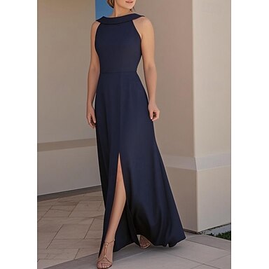 A-Linje Bryllupsgjestekjoler Elegant Kjole Bryllupsgjest Forlovelse Gulvlengde Ermeløs Crew Neck Stretch Crepe Cowl Bak med Slitt