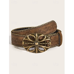 Damebelte i bohemsk stil i kunstskinn – intrikat blomsterdesign med metallspenne, perfekt for både hverdags og fritidsbruk.