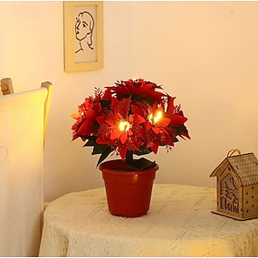 Julestjerneblomster LED, kunstige julestjerneplanter, falske julestjernearrangementer innendørs utendørs jul julestjerneblomsterdekorasjon julegave