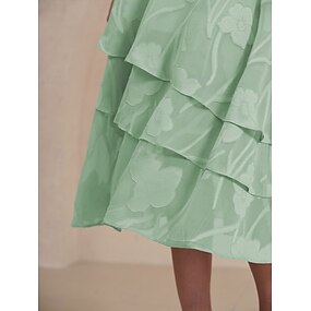 Dame Elegant Midi Medium Midje Skjørt Blomstret Blonde Drapering Multi Layer Mikroelastisk Stevnemøte Fritid / hverdag Salvie Grøn Vår, Høst, Vinter, Sommer Polyester