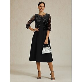 Dame Midikjole Kjole med A-linje Elegant Daglig Bryllupsgjest Paljetter Broderi Normal Blomstret Kortermet Crew-hals Wedgewood