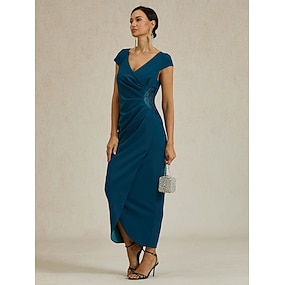 Dame Maxikjole Tubekjole Elegant Normal Helfarge Kortermet V-hals Blæk Blå