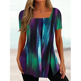 Dame Store størrelser T skjorte Blomstret Stripet Tunikaer Grunnleggende Kortermet Firkantet hals Vanlige topper Avslappet Ferie Trykt mønster Svart Hvit Rosa Lilla Mørkegrå