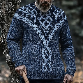 Herre Viking Pullover genser Strikketøy Crewneck Retro / vintage Fritid Feriereise Daglig 3D-utskrift Graphic Hold Varm Langermet Vår Høst Vinter Sort A Svart b Brun