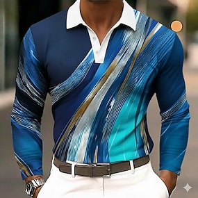 Herre Geometrisk Linje Polo Langermet Poloskjorter Knaphul Business Casual utendørs treningsklær Dagligdagstøy 3D-utskrift Knapper Vår Høst Vinter Blå 1 blå 2# Blå