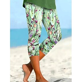 Kvinners leggings capri bukser høy elastisitet mote streetwear kalv-lengde høy midje blomster grafisk trykk pustende myk utendørs daglig grønn sommer vår vanlig passform