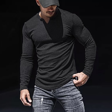 Herre T skjorte Muskelskjorte Ribbestrikket t-skjorte Langermet skjorte Langermet V-hals Vår & Vinter عادي Mote Designer Fritid Gate Sport Ferie Svart Hvit Rosa Topp T-skjorte for menn