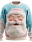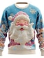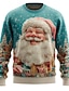 Stygg julegenser Herre julenissen 3D-utskrift Pullover genser Strikketøy Crewneck Fritid Feriereise Daglig Festival 3D-utskrift Hold Varm Langermet Vår Høst Vinter Blå 1 blå 2# Blå