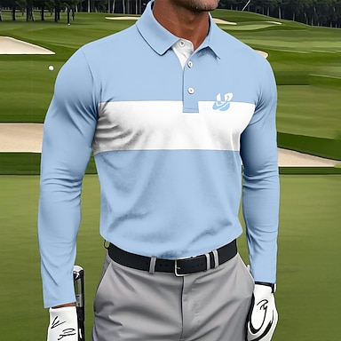 Herre Stripet Polo Sports poloskjorter Langermet Poloskjorter Skjorter med krage Sportsklær Fritid utendørs Dagligdagstøy 3D-utskrift Vår Høst Vinter Hvit Rød Navyblå