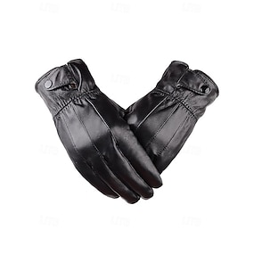 menns vinterhansker i imitert skinn med spennestropp – varmfôrede hansker for kaldt vær, kompatibel med berøringsskjerm