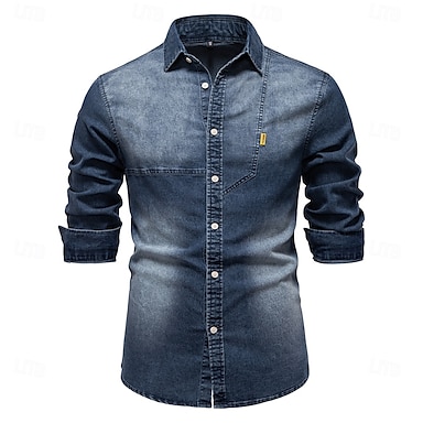 Herre Skjorte Svart Mørkeblå Lyseblå Langermet Helfarge Rullekrage utendørs Avslappet Knapper Klær Daglig Fritid hverdag Fritid