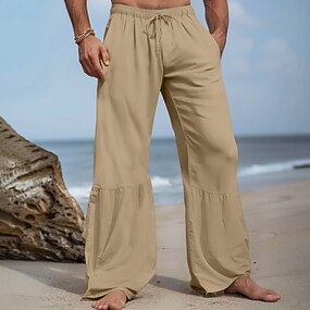 Herre Linbukser Bukser Sommerbukser Posete bukser Strandbukser Elastisk midje Snorer Rett ben عادي Komfort Pustende Full lengde Avslappet Daglig Ferie Ferie Grunnleggende Hvit Militærgrønn