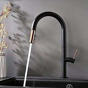 kjøkkenvask blandebatteri med uttrekkbar sprøyte moderne, 360 roterbar nedtrekkbar enkelthåndtak ett hull høybue antikke kjøkkenkraner, justerbar kaldt- og varmtvannsslange