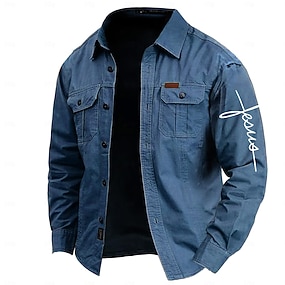 Herre Bokstavmotiv Arbeidsskjorter Western skjorte Cargo skjorte Langermet Fritid Taktisk Sport & Utendørs Ut på byen Vinter Vår & Vinter Aftæpning Trykt mønster Militærgrønn Blå Kakifarget