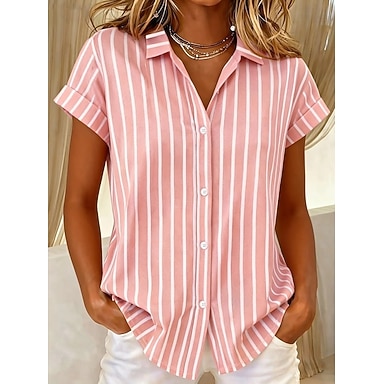 Kvinnenes T-skjorte Korte Ermer Grafisk Geometrisk Stripet Vintage Tropisk Stilfull Uten Ermer Skjorte Krage Lange Topper Daglig Blå Svart Rosa Oransje Grønn Sommer Vår