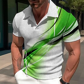 Herre Gradert Grafiske trykk Geometri Poloskjorter Golf skjorte Kort Erme Skjorte cubansk krage utendørs Gate Rød Blå Grønn Trykt mønster Klær Mote Designer Fritid Pustende