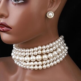 brudesmykkesett 1 sett imitert perle legering øredobber halskjede dame elegant kunstnerisk enkelt smykkesett til bryllup bursdag høytid
