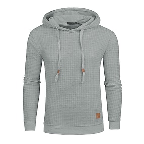 Herre Hattetrøje Vaffel hettegensere Svart Hvit Kakifarget Lysegrå Mørkegrå Helfarge Riflet Med Tekstur Strikketekstur Sport & Utendørs Avslappet Polyester Kul Vinter Klær Gensere Gensere Langermet