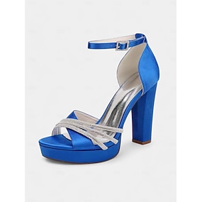 Dame bryllup sko Sandaler Bling Bling sko Mousserende sko Brudesko Glidelås Tykk hæl Åpen Tå minimalisme Sateng Glidelås Sølv Vin Grønn Og Blå